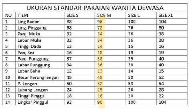Berikut ini beberapa ukuran standar pengukuran bagian badan ketika.